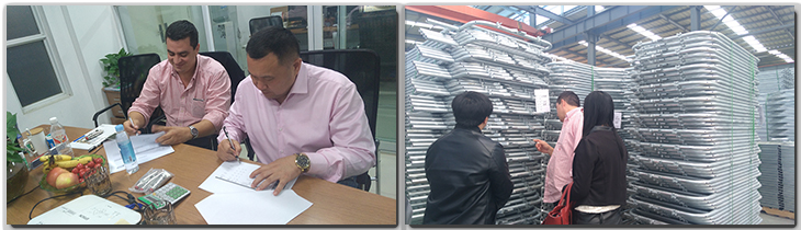 经过近一年的讨论,客户于2017年4月参观了我们的工厂。客户经过和我们的愉快讨论以及对工厂及设备的仔细考察,参观期间签订了合同。河南恒银的产床、定位栏深受客户好评,喂养系统也得到了客户的认可
