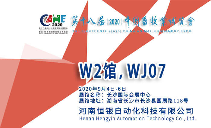 作为一年一度的畜牧业盛会,恒银公司决定参加2020年9月4日在长沙国际会展中心举办的第十八届中国畜牧业博览会,展位:W2馆 WJ07。欢迎届时各位广大客户前来参观指导,期待与您相见!